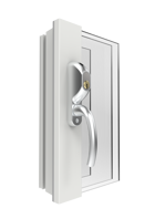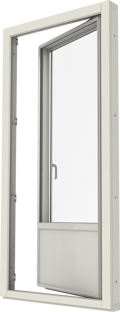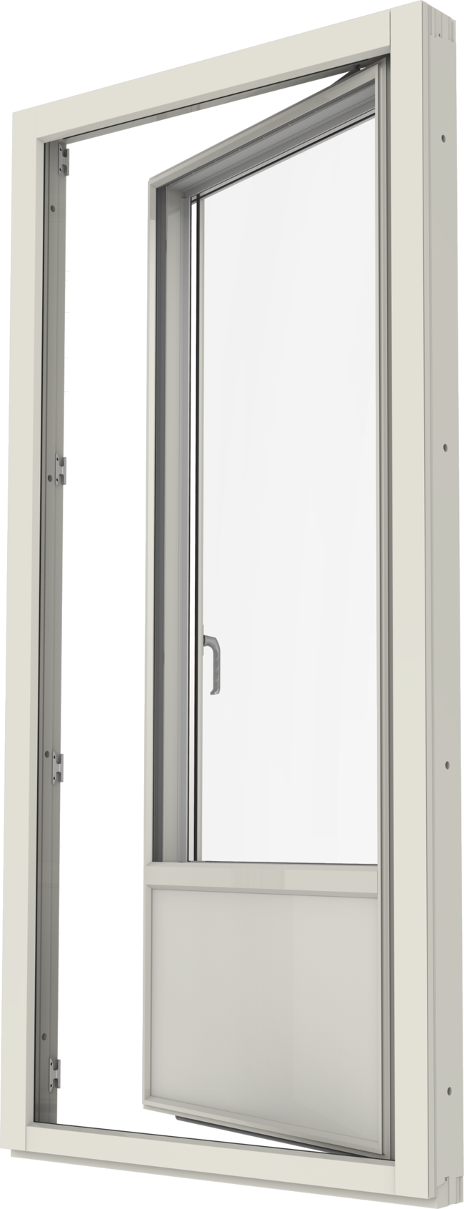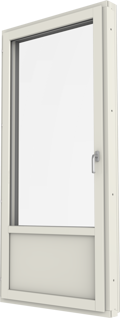 Inåtgående fönsterpardörr. Finns i olika varianter, helglasad, glasad underdel eller fyllning nertill.