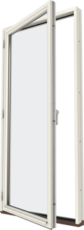 Elitfönster MF Duo Altandörr finns att få som enkeldörr. Välj mellan helglasad, glasad underdel eller fyllning nertill.