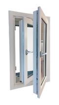 Sidhängt innerfönster med enkelglas. För kombination med annat av våra fönster i ett dubbelkarmsystem.