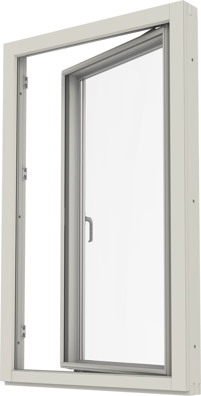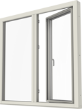 Inåtgående kopplat sidhängt fönster. Erbjuds även som flerluft och i kombinationer.